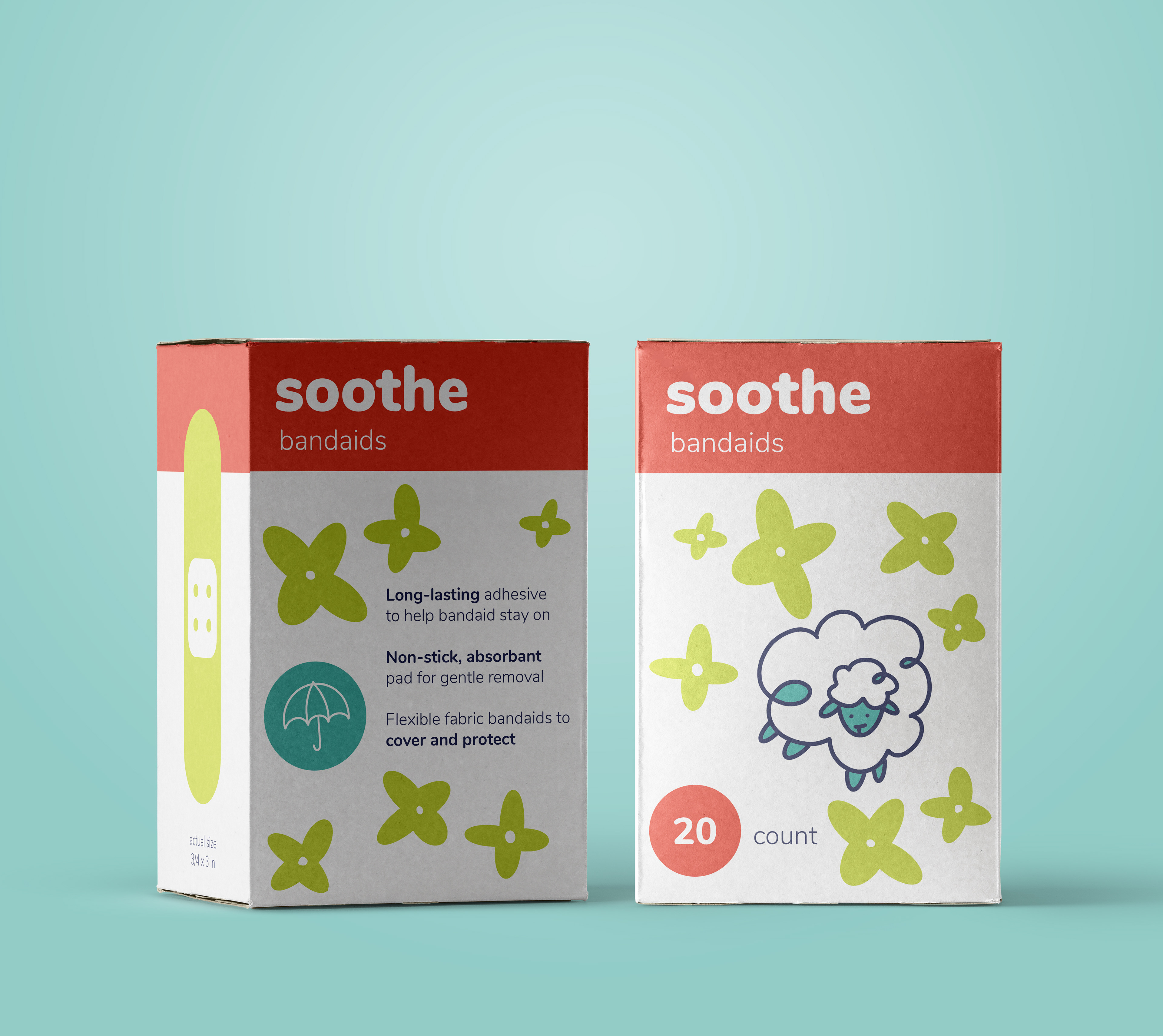 Soothe is a fictional company that makes bandaids, health care items, and first aid kits. These products are geared toward children and families.